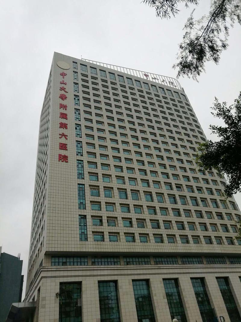 中山大學附屬第六醫院·廣東省胃腸肛門醫院(簡稱中山六院),是一所集醫療、教學、科研、預防和康復保健等為一體的三級甲等綜合性醫院,醫院為中山大學八家直屬附屬醫院之一,擁有兩個院區(員村院本部和瘦狗嶺北院區),編制床位1800張,開放床位1300張。是廣東省、廣州市公費醫療定點醫院;還是廣州市、深圳市、東莞市、珠海市、佛山市、惠州市、江門市等省內18個地級市的醫療保險定點醫院。