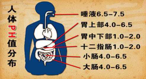 胃在排空時pH值約在7.0~7.2之間,當食團進入胃中時,pH值可降達2~3之間。可是剛才我們看到,市面上pH最高也就是堿性最強的飲用水也不過在8點多。
